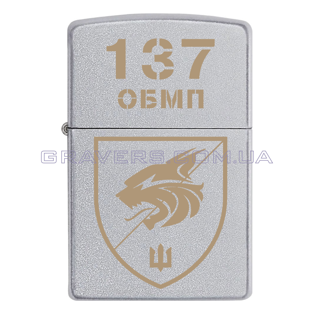 Бензинова запальничка Zippo Classic Chrome з гравіюванням знака 137-й окремий батальйон морської піхоти (137 ОБМП)