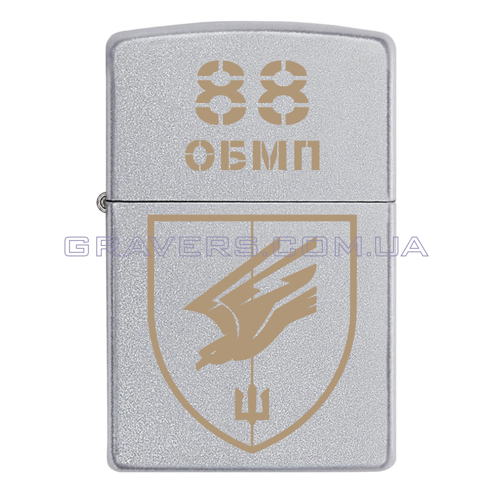 Оригінальна запальничка Zippo Classic Chrome - класична бензинова запальничка Zippo сріблястого кольору з індивідуальним гравіюванням знаку 88-й окремий батальйон морської піхоти (88 ОБМП, в/ч А2613)