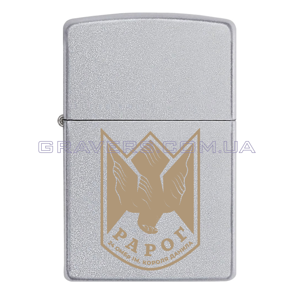 Оригінальна запальничка Zippo Classic Chrome - класична бензинова запальничка Zippo сріблястого кольору з індивідуальним гравіюванням знаку - РАРОГ - ударні дрони 24 ОМБр